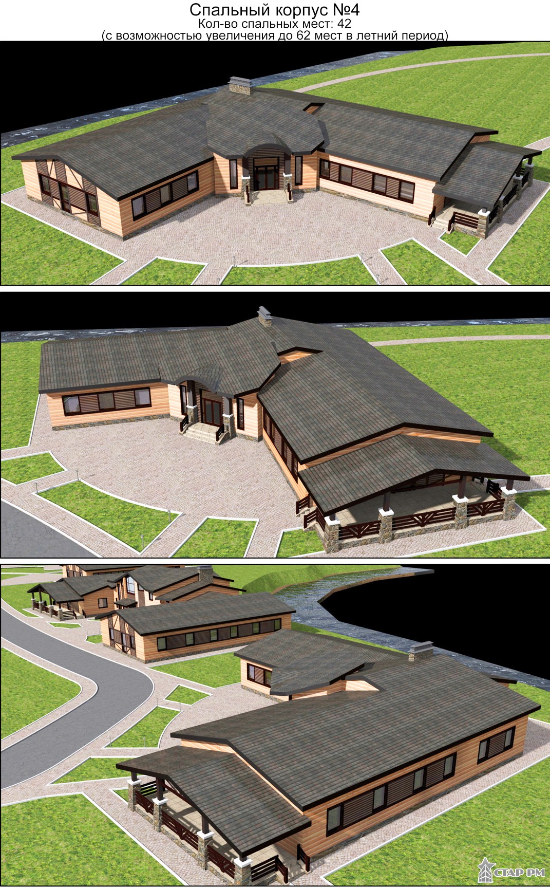 - жилые корпуса на 150 чел (со встроенными функциями: медпункт, прокат спортинвентаря, киоск; прачечная и т.д.)